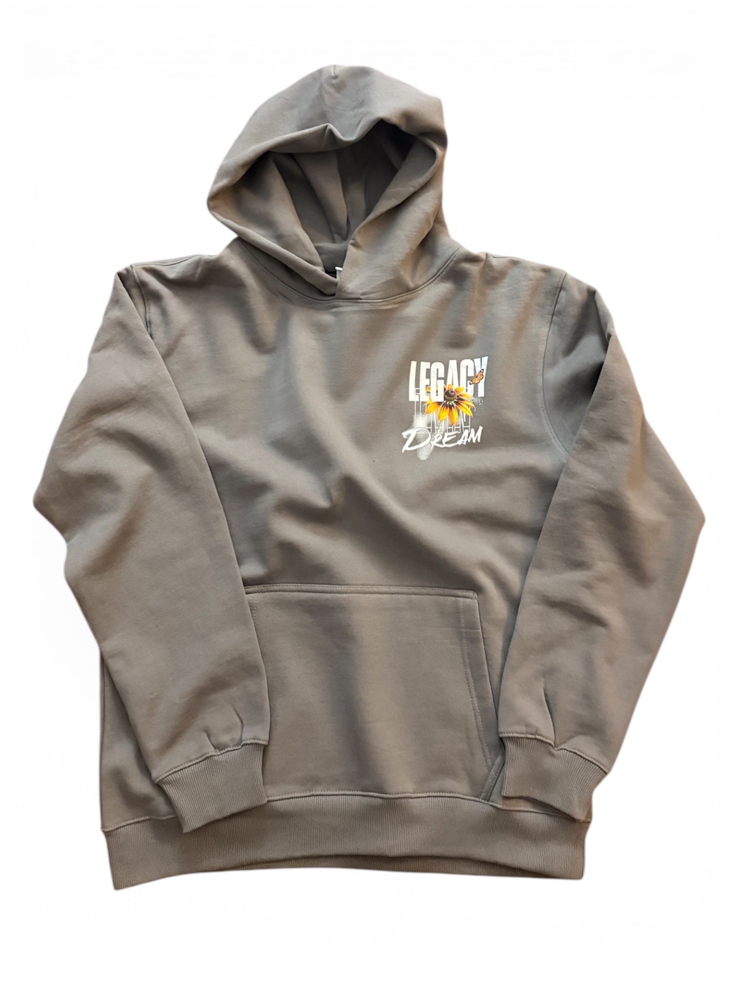 Made with a premium fabric, this grey sweatsuit offers a soft, heavyweight feel that’s perfect for everyday wear. The hoodie showcases a powerful back graphic reading “LEGACY DREAM – The Collection.